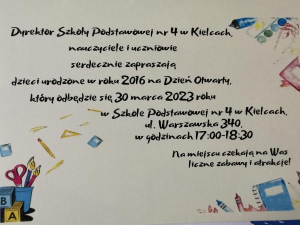 Zapraszamy przyszłych Pierwszaków wraz z Rodzicami do wzięcia udziału w Dniu Otwartym, który odbędzie się 30 marca 2023r., o godz. 17.00 w naszej szkole!
