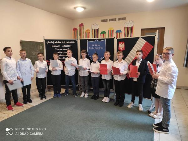 Uczniowie razem z wychowawca Agnieszką Litwin i uczniowie klasy 4 przygotowali krótki występ artystyczny. Pod koniec Pani Dyrektor przeprowadziła uroczyste pasowanie...