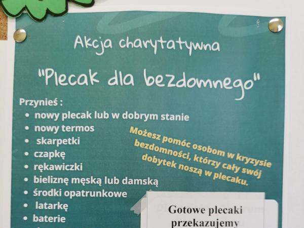 Akcja - „Plecak dla bezdomnego”.