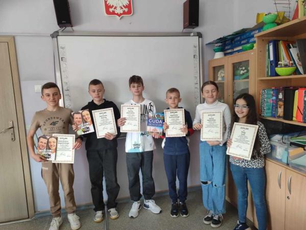 W dniu 11 kwietnia 2024r. odbyło się rozstrzygnięcie konkursu szkolnego: "Turniej wiedzy o języku polskim". W konkursie uczestniczyło 5 drużyn składających się z trzech reprezentantów spośród klas 4-8. Konkurs podzielony był na kilka kategorii: