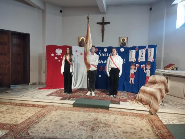 Tuż przed weekendem majowym 30 kwietnia uczniowie z klasy 2, 6, 7 i 8 wraz z nauczycielami p. Magdaleną Jaremcio, p. Martą Wawszczyk i p. Katarzyną Moskal przygotowali piękny występ słowno - muzyczny. Nie zabrakło w nim wspaniałej, patriotycznej postawy, pięknej dekoracji, a także barwnych kostiumów...