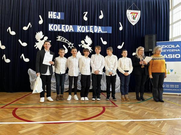 Dnia 9 stycznia nasz szkolny Zespół Kameralny UNISONO zdobył I miejsce w Międzyszkolnym Konkursie Kolęd, Pastorałek i Piosenek Świątecznych „Hej kolęda!” wykonując utwór pt.: „Skrzypi wóz” w kategorii zespół kl. 4-8.