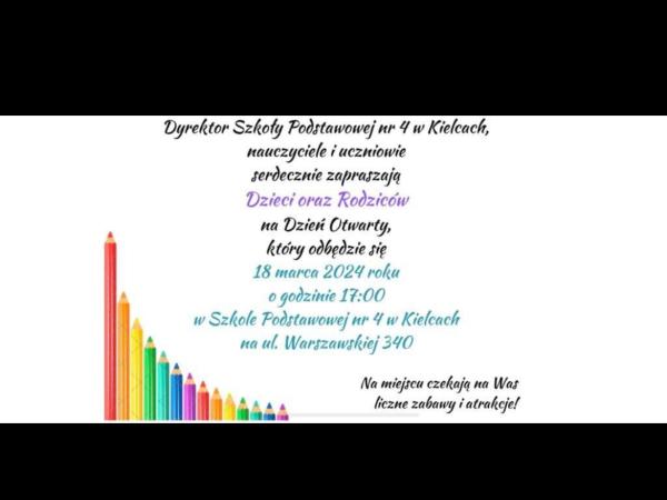 Zapraszamy kandydatów do klasy pierwszej w nowym roku szkolnym 2024/2025r., na Dzień Otwarty w Naszej Szkole, który odbędzie się 18 marca o godz. 17.00.