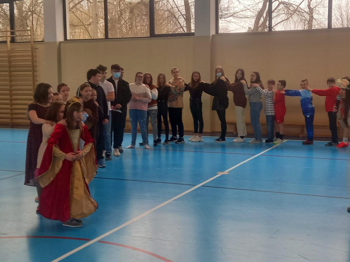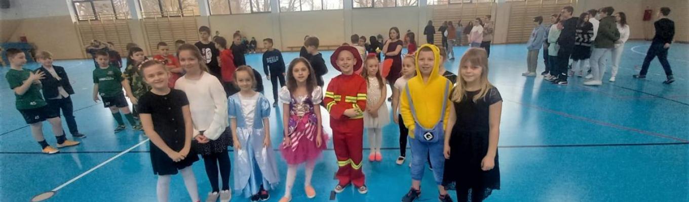 Dnia 25 lutego odbyła się zabawa karnawałowa dla uczniów naszej szkoły. W tym roku uczniowie zgromadzili się na Hali Sportowej, aby wspólnie bawić się i tańczyć. Uczniowie klas 1-4 przygotowali piękne i barwne stroje, które zostały nagrodzone. Podczas zabawy odbyły się różne konkursy z nagrodami, wspólne zabawy taneczne, a także pokazy talentów piłkarskich chłopców z klasy III.