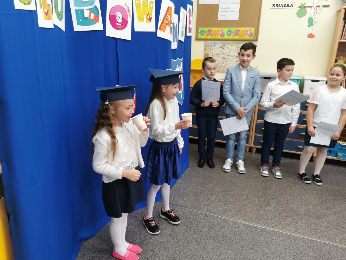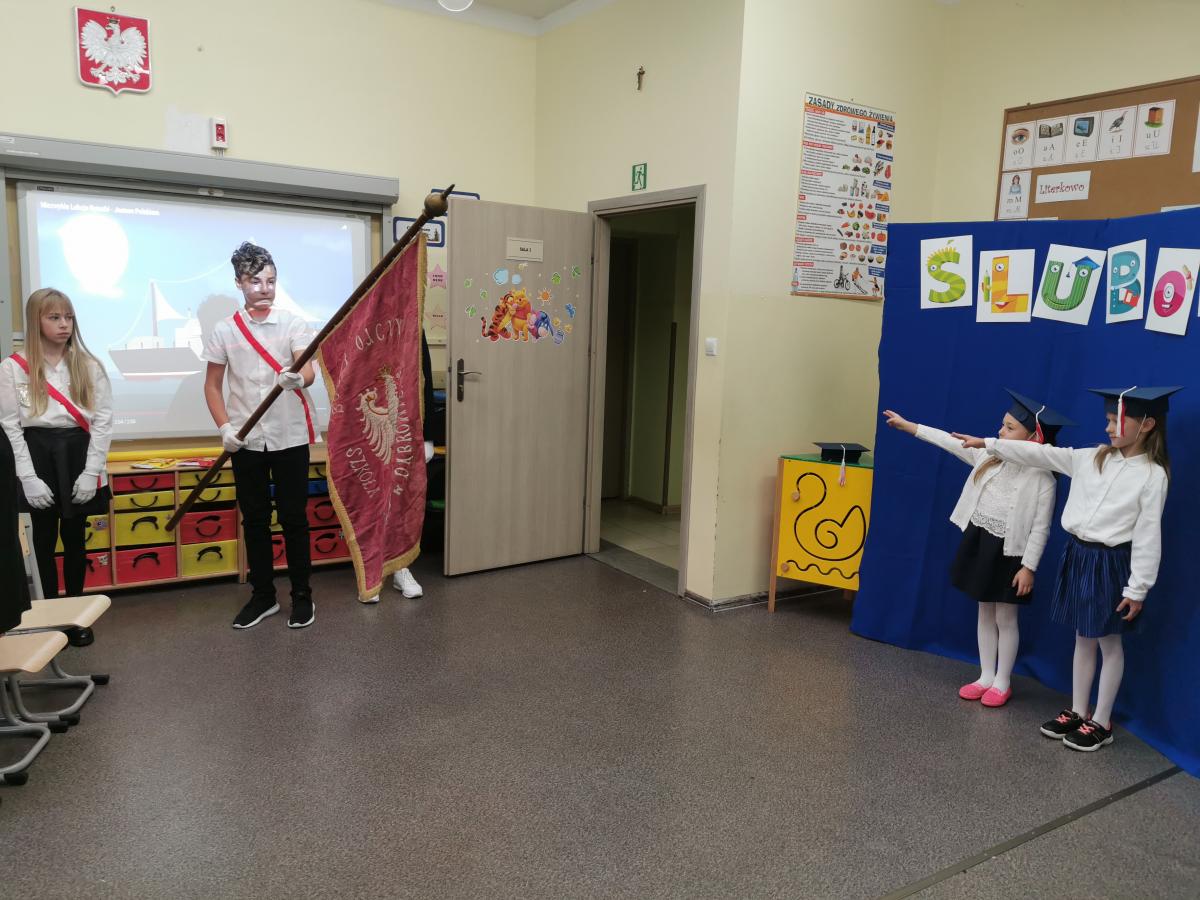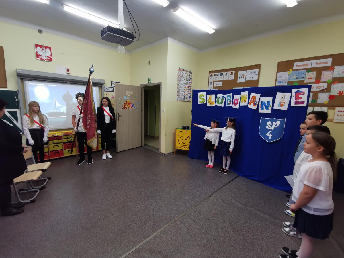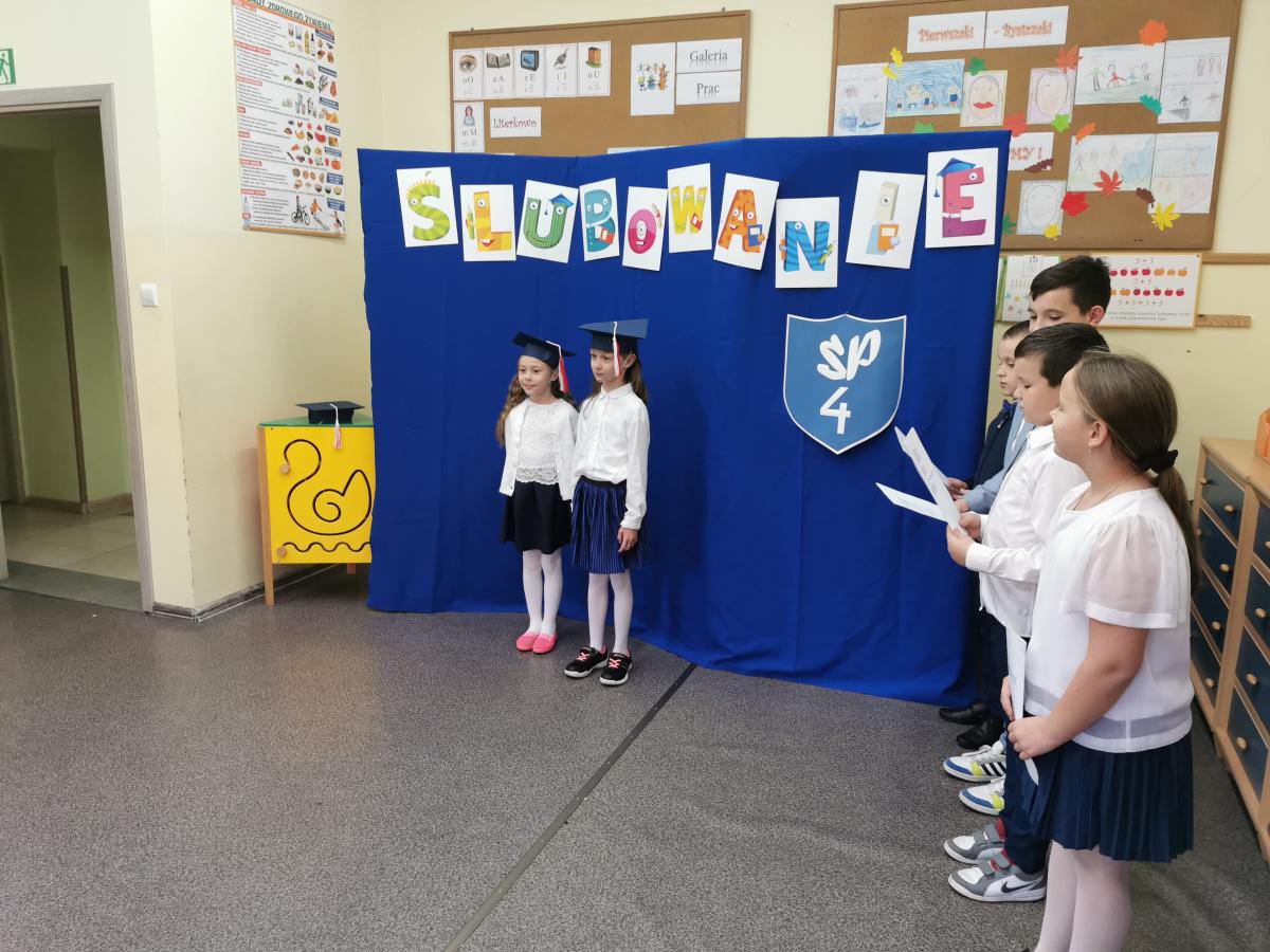 3 listopada odbyło się uroczyste Ślubowanie klasy pierwszej. Ubrane na galowo z biretami na głowach pierwszaki zaprezentowały gościom program artystyczny. Popisy Miluśińskich przy udziale uczniów klasy 4 nagrodzono gromkimi brawami. Po części artystycznej p. dyrektor B. Habel dokonała uroczystego pasowania. Zakończenie imprezy stanowiło wręczenie legitymacji szkolnych, pamiątkowych dyplomów uczniom oraz gratulacji wzruszonym rodzicom.