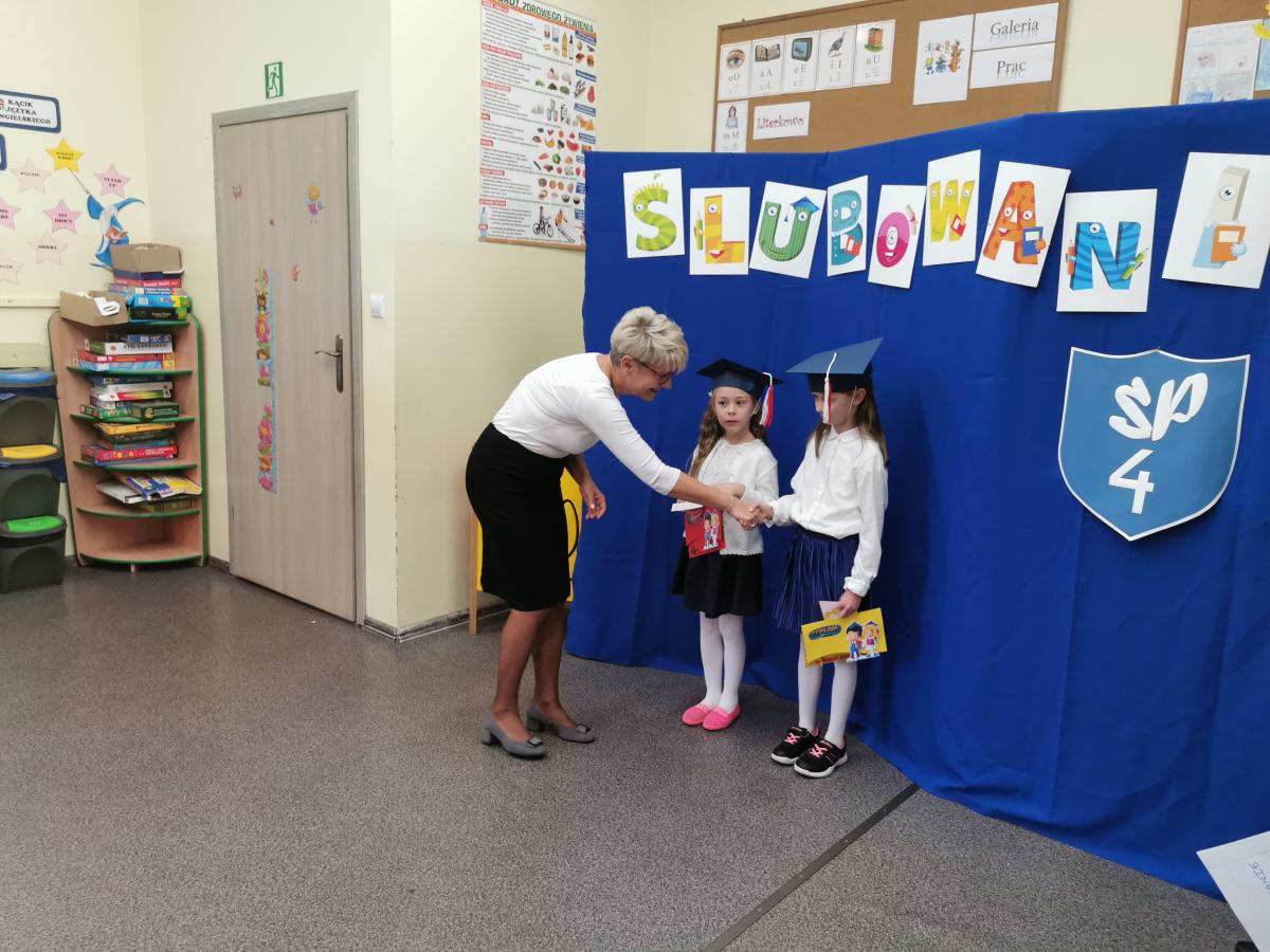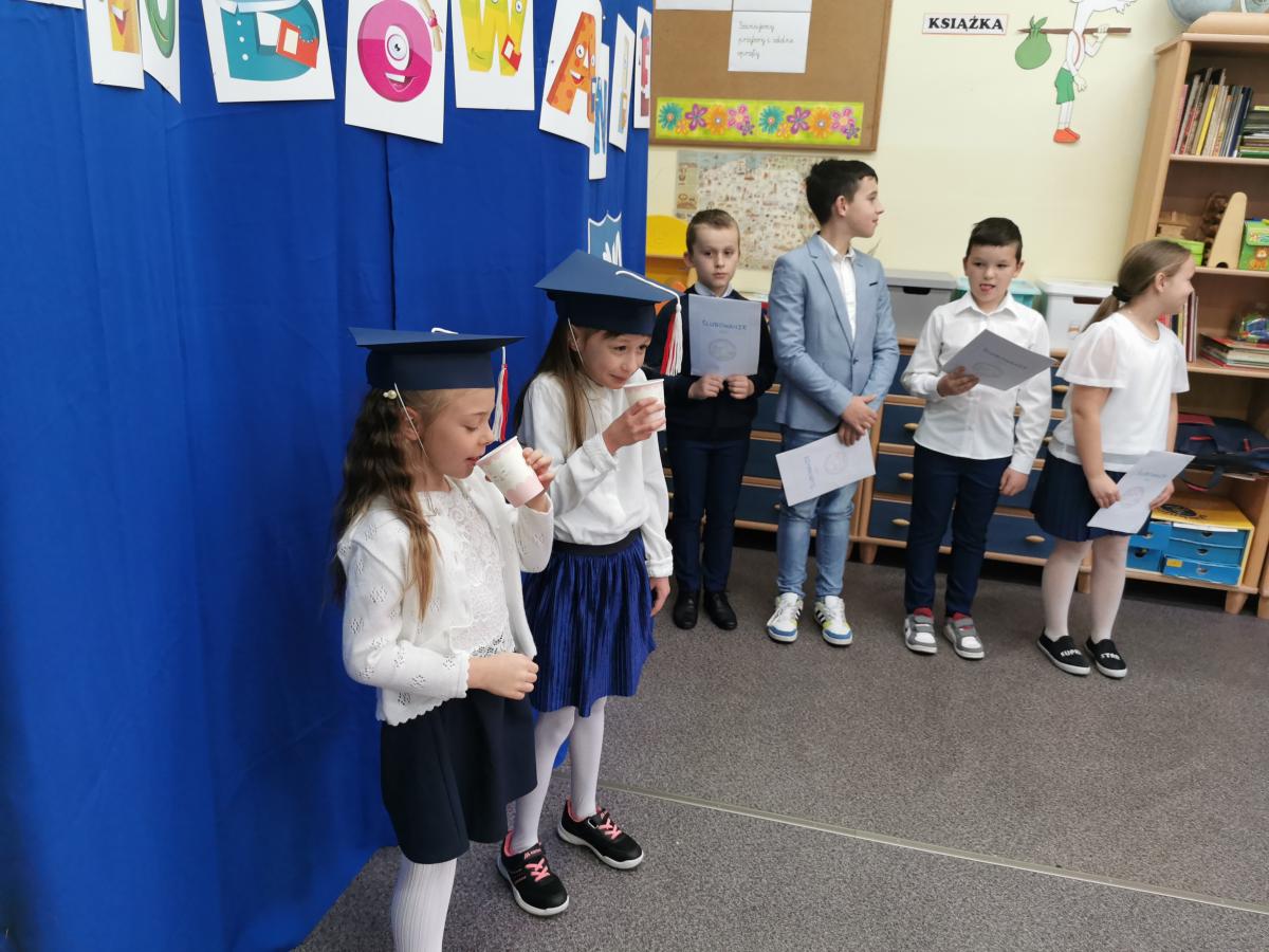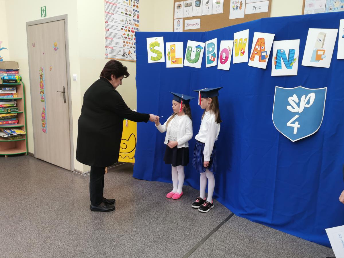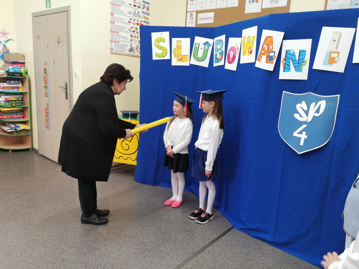 3 listopada odbyło się uroczyste Ślubowanie klasy pierwszej. Ubrane na galowo z biretami na głowach pierwszaki zaprezentowały gościom program artystyczny. Popisy Miluśińskich przy udziale uczniów klasy 4 nagrodzono gromkimi brawami. Po części artystycznej p. dyrektor B. Habel dokonała uroczystego pasowania. Zakończenie imprezy stanowiło wręczenie legitymacji szkolnych, pamiątkowych dyplomów uczniom oraz gratulacji wzruszonym rodzicom.