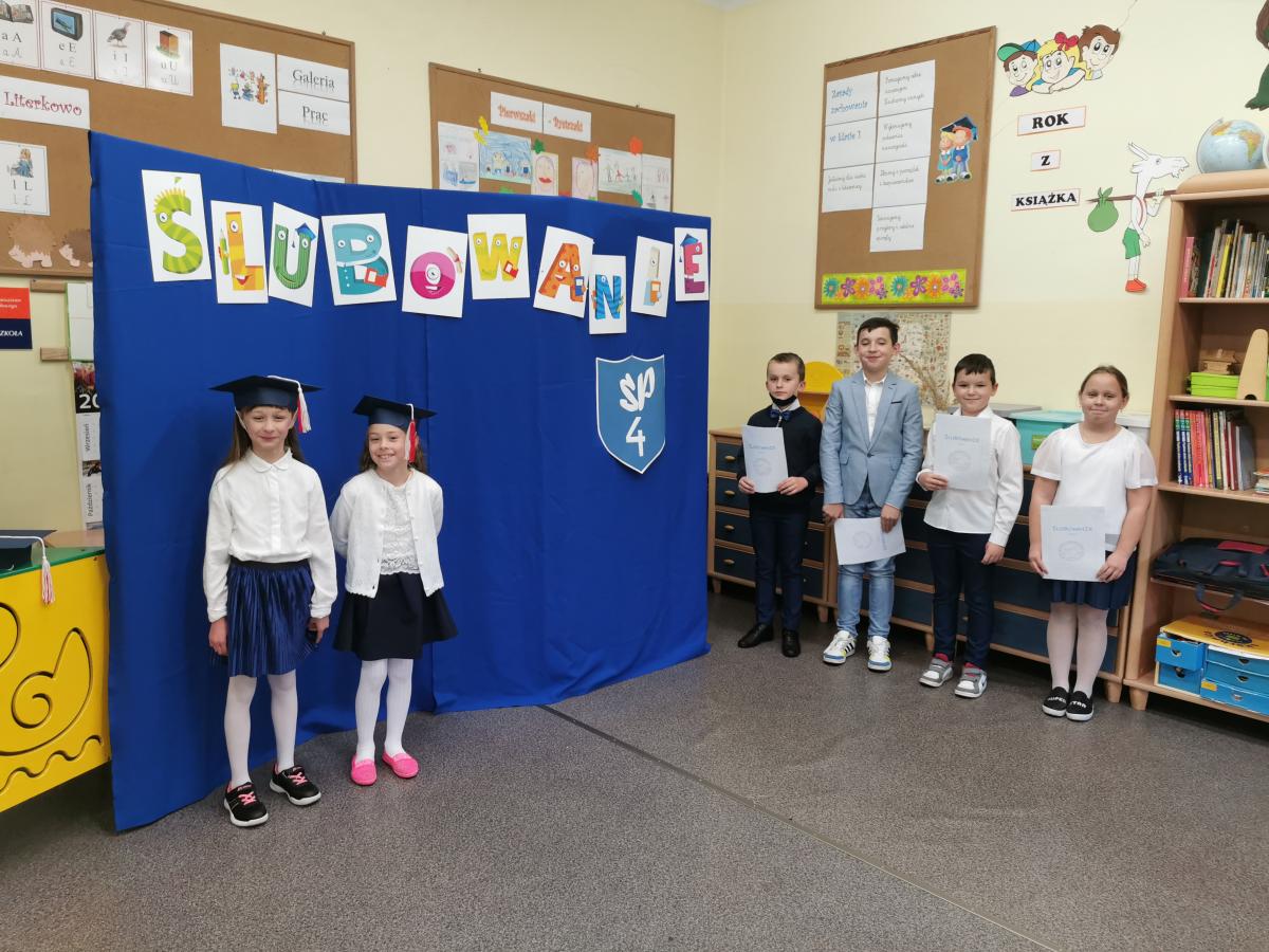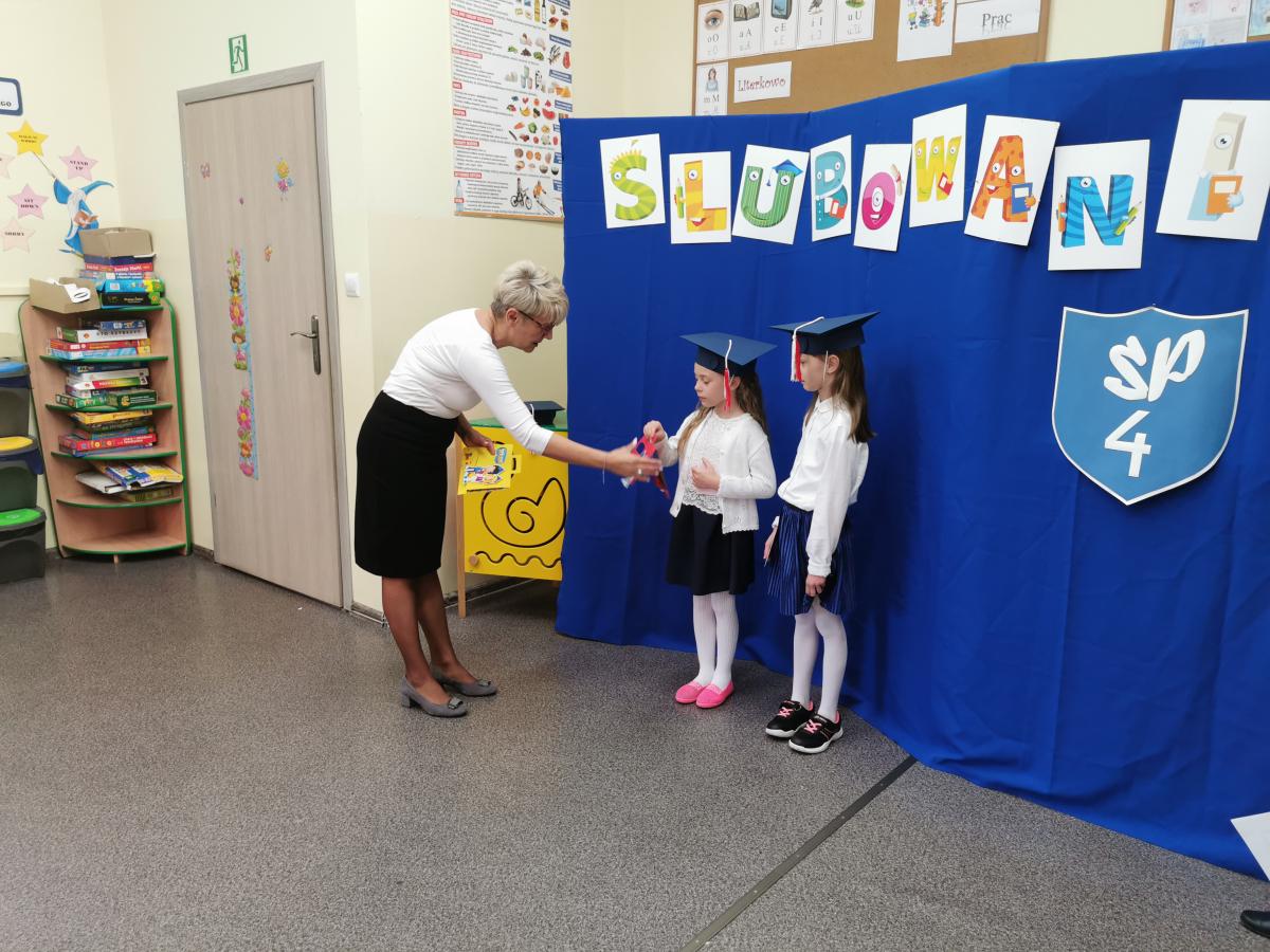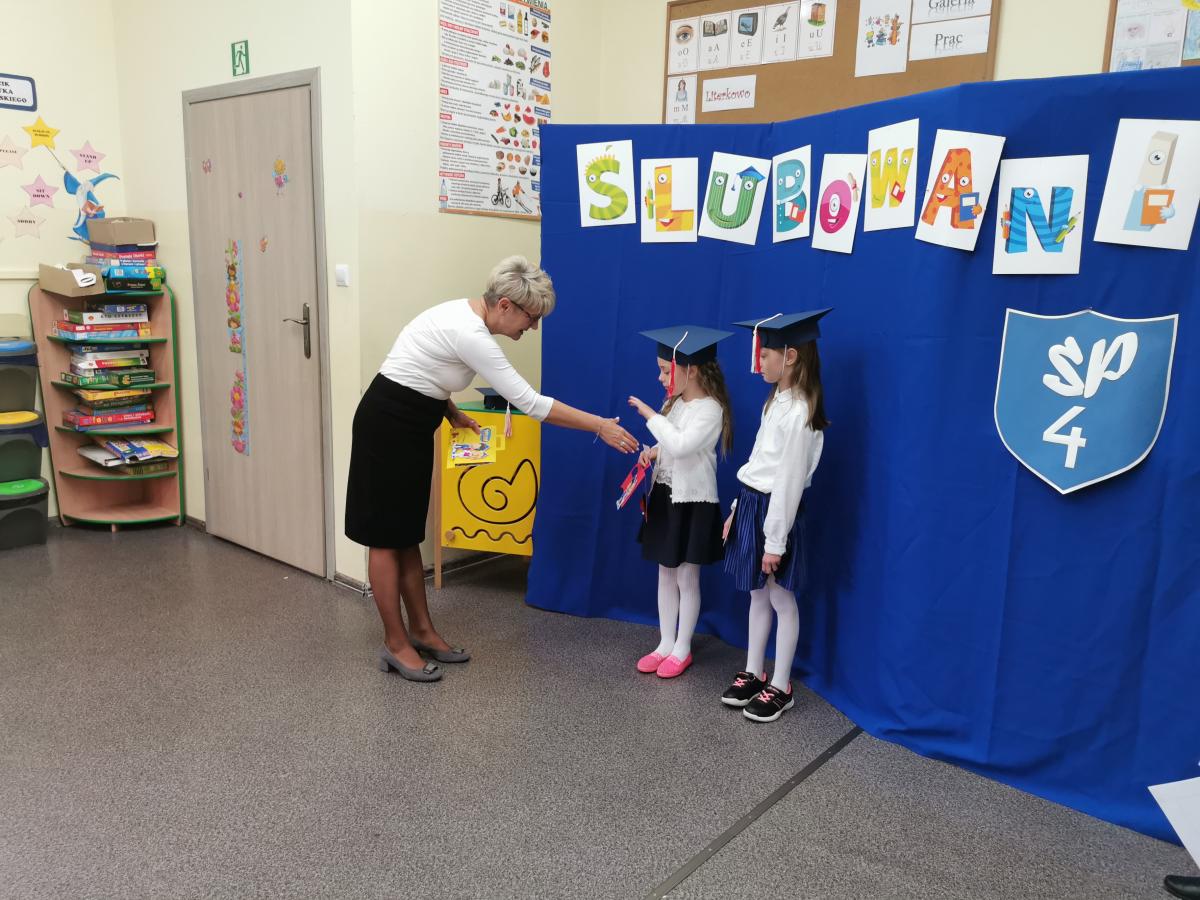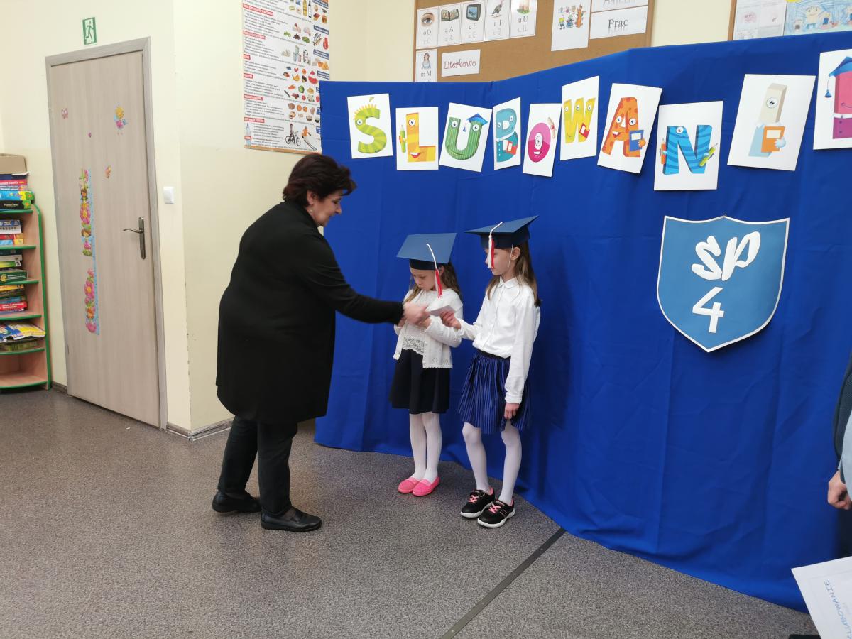 3 listopada odbyło się uroczyste Ślubowanie klasy pierwszej. Ubrane na galowo z biretami na głowach pierwszaki zaprezentowały gościom program artystyczny. Popisy Miluśińskich przy udziale uczniów klasy 4 nagrodzono gromkimi brawami. Po części artystycznej p. dyrektor B. Habel dokonała uroczystego pasowania. Zakończenie imprezy stanowiło wręczenie legitymacji szkolnych, pamiątkowych dyplomów uczniom oraz gratulacji wzruszonym rodzicom.