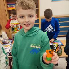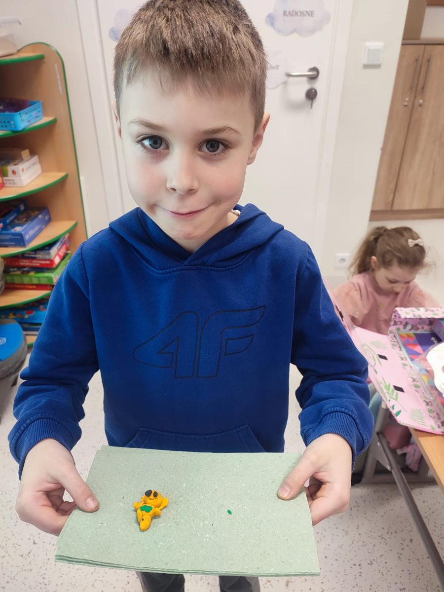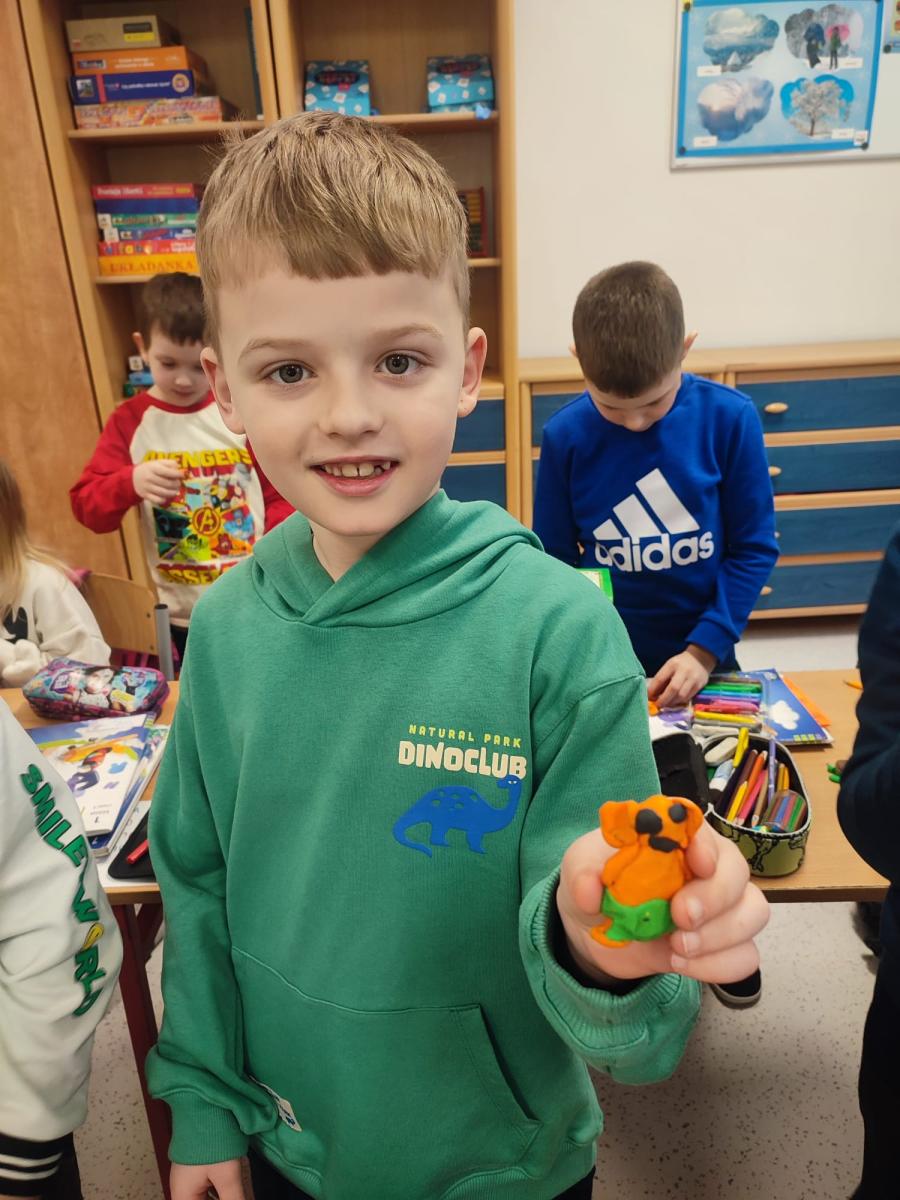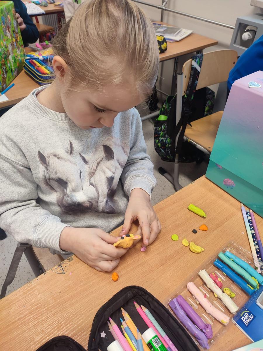 Opublikowano: 06.02.2026 Klasa IB po przeczytaniu wybranych fragmentów lektury ,,Plastusiowy pamiętnik'' z wielkim zaangażowaniem przystąpiła do pracy plastycznej. Uczniowie ulepili z plasteliny własnego Plastusia a zajęciom towarzyszyło dużo zabawy, radości i uśmiechu.