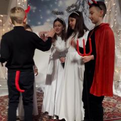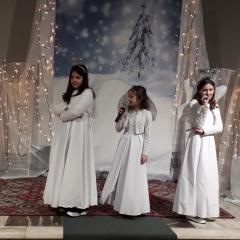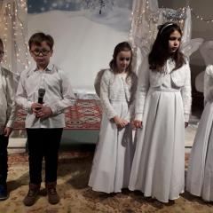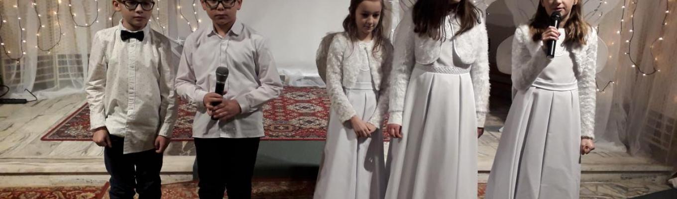Naszym aktorom towarzyszył chór szkolny, który swym występem wprowadzał publiczność w świąteczny nastrój. Wszystkim aktorom, tym małym i dużym, gratulujemy wspaniałego występu, który wzruszył niejednego widza, a z pewnością zachęcił do okazywania sobie wzajemnej miłości i życzliwości.