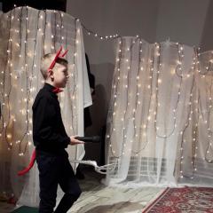 Młodzi aktorzy z klasy IV, ich rodzice oraz nauczyciele, wprowadzili nas w klimat zbliżających się świąt Bożego Narodzenia. Była to opowieść o niezwykłym prezencie, który przekazywany z rąk do rąk, miał magiczną moc, wnosił bowiem do życia bohaterów dużo radości, życzliwości i ciepła, spowodował przemianę ludzkich serc.