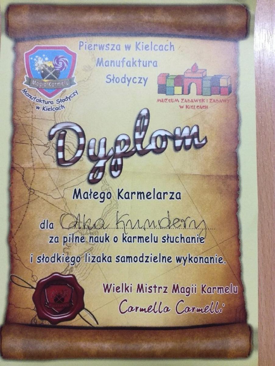 Dnia 7 grudnia Św. Mikołaj zaprosił uczniów klas y 1 i 2 do Manufaktury Słodyczy "Magia karmelu". Uczniowie uczestniczyli w karmelkowych warsztatach uzyskując tytuł "Małego Karmelarza". Z autorskimi lizakami w rękach odwiedzili ciekawe miejsca Kielc: Rynek, Plac Wolności, Pomnik Józefa Piłsudskiego oraz główną ulicę miasta im. H. Sienkiewicza. To były wyjątkowo słodkie mikołajki!!