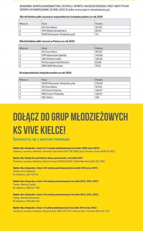 Opublikowano: 11.02.2021 Trwają zapisy na zajęcia sportowe do grup młodzieżowych KS VIVE KIELCE. Wszystkich chętnych zapraszamy do udziału.