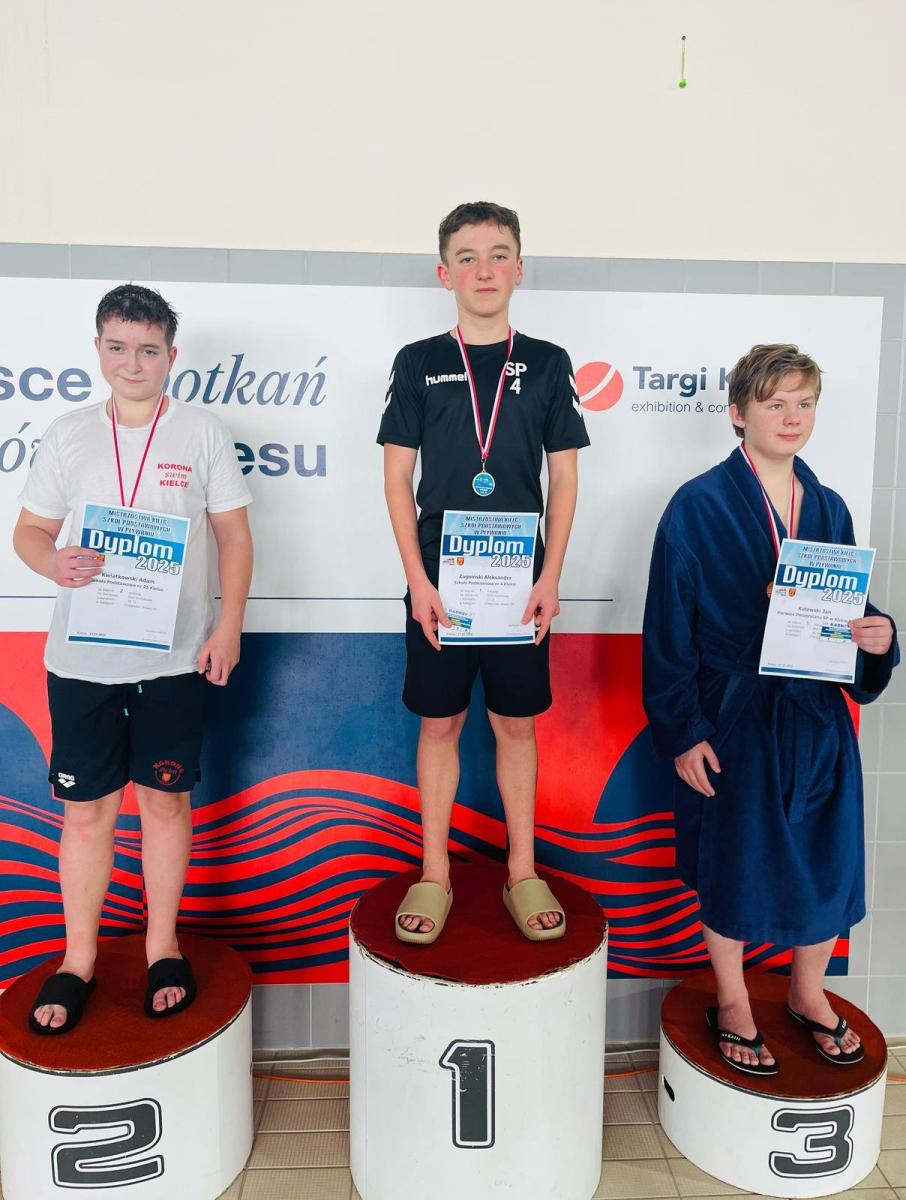 W piątek 21 lutego, odbyły się Mistrzostwa Kielc Szkół Podstawowych w pływaniu. Nasz uczeń Aleksander Zagniński nie miał sobie równych, pewnie wygrywając w stylu grzbietowym i motylkowym. Nasza sztafeta w składzie: Aleksander Zagniński, Wojciech Zemsta, Antoni Michta i Filip Biernat zajęła wysokie 5 miejsce. Gratulujemy!