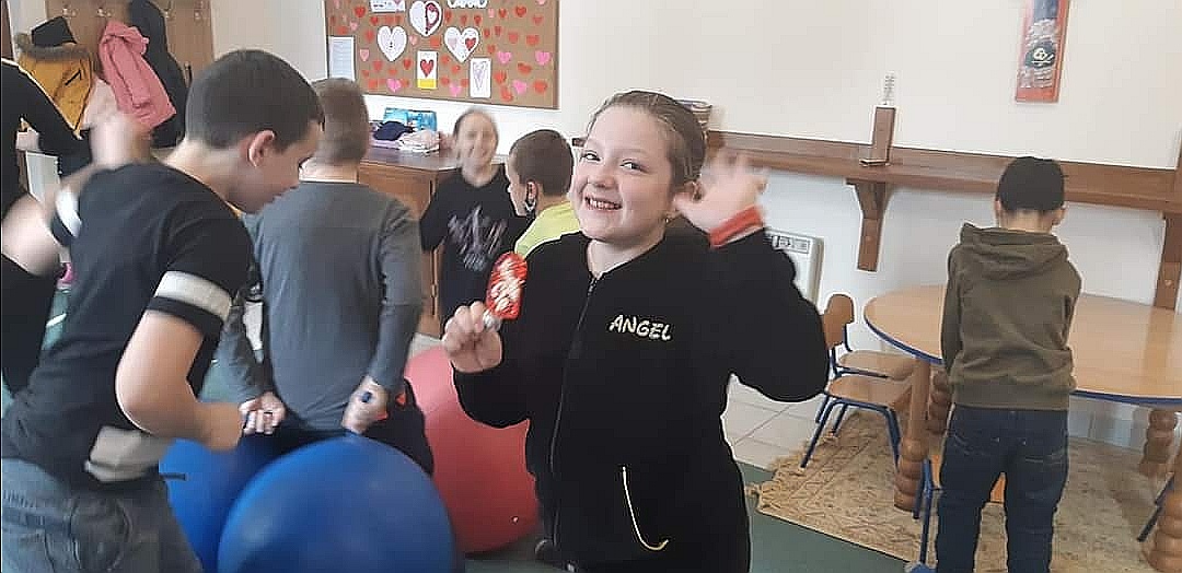 W świetlicy również uczniowie świętowali zbliżający się 14 lutego dzień św. Walentego (Światowy Dzień Zakochanych). Zabawy przy muzyce, wywołały wśród uczniów wiele radości i uśmiechu.