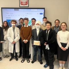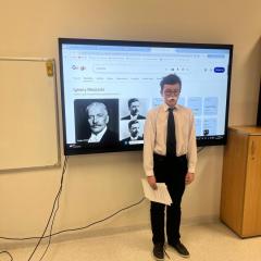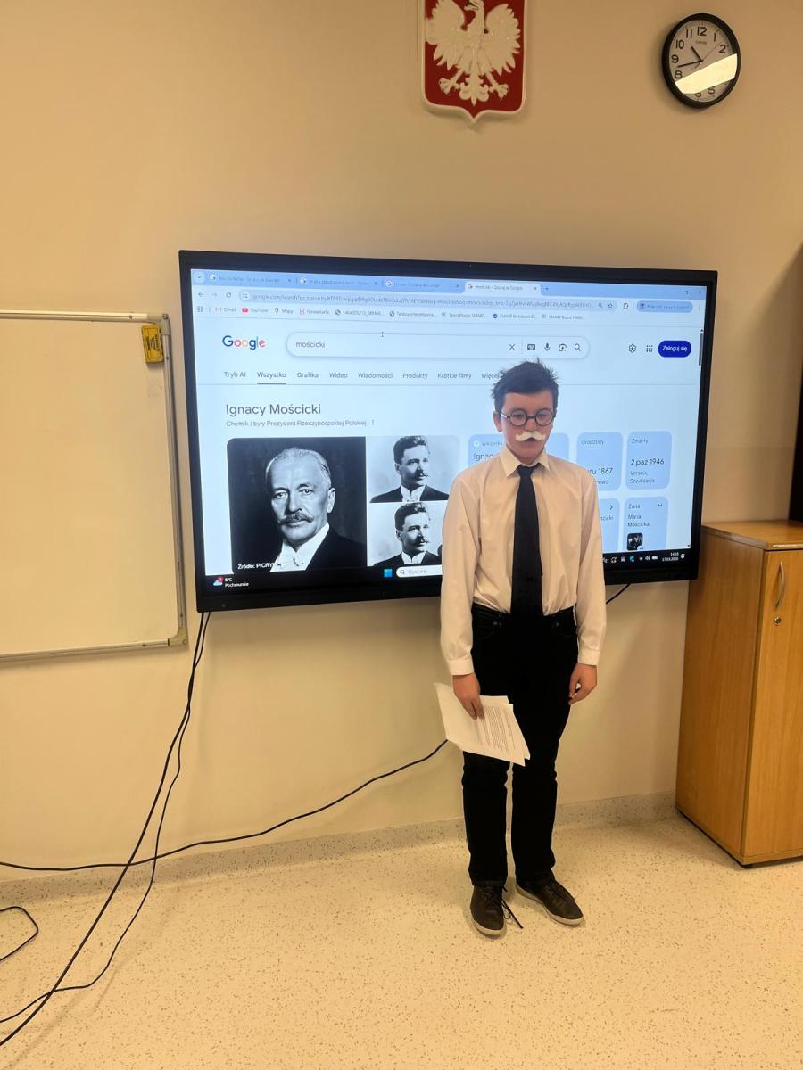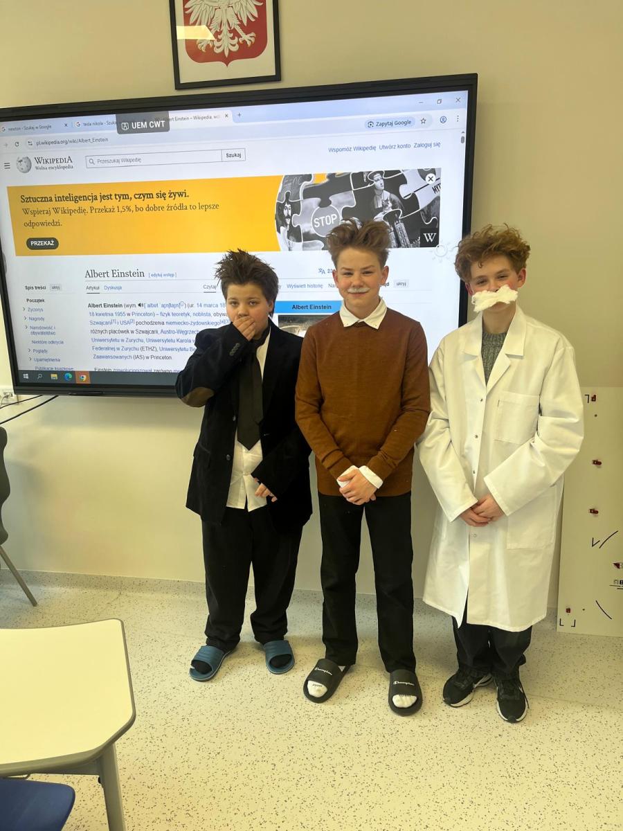 W ramach obchodów dnia liczby Pi w naszej szkole uczniowie klas VII- VIII wzięli udział w specjalnych lekcjach fizyki, a właściwie konferencjach naukowych poświęconych sławnym naukowcom i ich dziełom. Uczniowie wcielili się w wybranych przez siebie uczonych i prowadzili wykłady / prezentacje dotyczące ich dorobku naukowego. Pieczę nad wykładami sprawowała pani Beata Kołodziej.