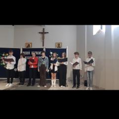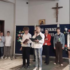 Dnia 14 października 2023r., obchodziliśmy 250 - tą rocznicę utworzenia Komisji Edukacji Narodowej. Z tej okazji uczniowie klas 5, 7 i 8 przygotowali piękną akademię wraz z nauczycielami: Anną Miarką i Anitą Ligas-Skoneczną. W części artystycznej towarzyszył Szkolny Zespół Kameralny "UNISONO", pod kierunkiem Katarzyny Moskal, który przygotował utwory wokalne z towarzyszeniem instrumentów perkusyjnych, jak również Antoni Góźdź - uczeń klasy 4, jako nasz szkolny Pianista. Podczas wstępu nie zabrakło powagi, ale także uśmiechu, a nawet i wzruszenia. Na zakończenie akademii Pani Dyrektor Beata Habel, złożyła wszystkim nauczycielom najserdeczniejsze życzenia z okazji ich święta.