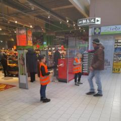 Po raz kolejny nasza szkoła wzięła udział w świątecznej zbiórce żywności zorganizowanej przez Bank Żywności w Kielcach. Uczniowie klasy IV, V, VI pełnili dyżury w Kauflandzie przy ul. Sikorskiego. Zachęcali klientów do zakupu dodatkowego długoterminowego produktu, który można było pozostawić w specjalnie przygotowanym wózku. Zebrana żywność została przekazana potrzebującym. Bardzo gorąco dziękujemy także rodzicom, którzy pełnili opiekę nad naszymi młodymi wolontariuszami. Jesteście wspaniali.
