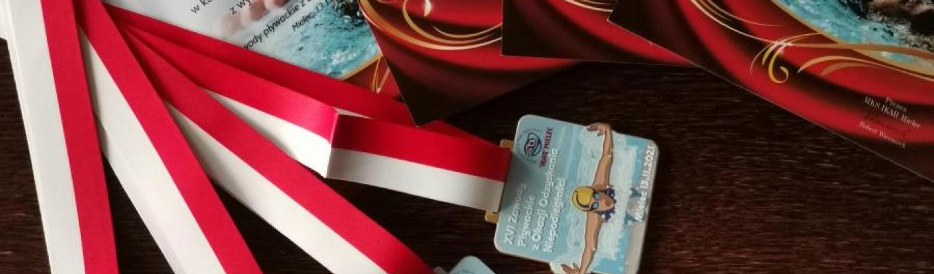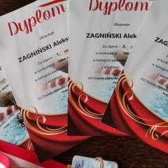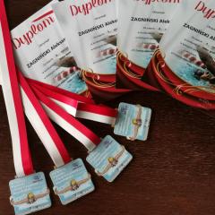 Przekazujemy kolejną dawkę sukcesów pływackich ucznia Aleksandra Zagnińskiego! Tym razem Aleksander wywalczył 4 medale: 2 złote i 2 srebrne na Ogólnopolskich zawodach z okazji Odzyskania Niepodległości w Mielcu. Gratulujemy i życzymy kolejnych wspaniałych sukcesów!!! :)