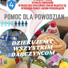 Dziękuję za ogromną wrażliwość, wielkie serca i otwartość na potrzeby drugiego człowieka. Ofiarowana pomoc jest dowodem głębokiego współczucia oraz solidarności z poszkodowanymi przez powódź. Szczególne wyrazy wdzięczności i podziękowań kieruję do Darczyńców oraz koordynatorek przedsięwzięcia „Pomoc powodzianom” Pani Magdaleny Jaremcio i Pani Ali Stradomskiej – Matczak. Dzięki wszystkim tym, którzy czynnie włączyli się w akcję, dary trafiły do potrzebujących.