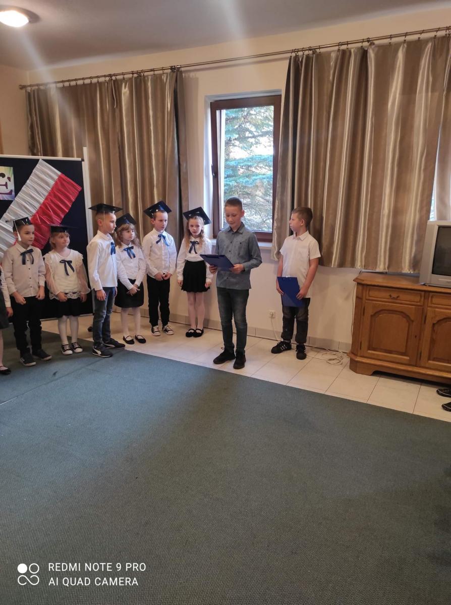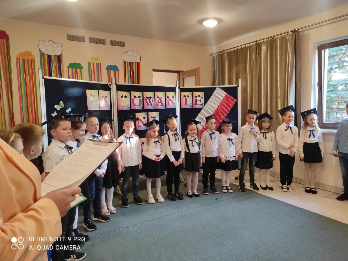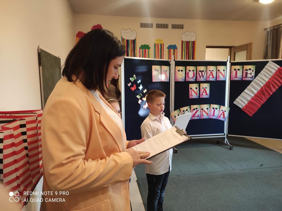 Uczniowie razem z wychowawca Agnieszką Litwin i uczniowie klasy 4 przygotowali krótki występ artystyczny. Pod koniec Pani Dyrektor przeprowadziła uroczyste pasowanie na ucznia.