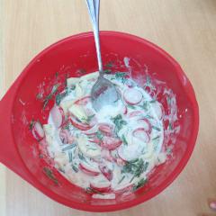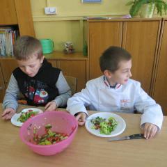 Wraz z początkiem wiosny u pierwszaków zajęcia kulinarne. Dzieci zrobiły pyszne, kolorowe sałatki z nowalijek.