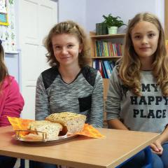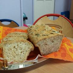 Dzisiaj, tj. 19 października 2015 roku gościliśmy w naszej szkole ubrane w stroje ludowe z regionu świętokrzyskiego panią Elżbietę Kamińską i panią Anielę Cedro z zespołu gospodyń wiejskich "Dąbrowianki" z Masłowa. Panie opowiedziały dzieciom o zbożach, z których wypiekają chleb, pokazały kłosy i ziarna pszenicy, jęczmienia, żyta, kwiatostany lnu, którego ziarna dodaje się do chleba oraz o strojach ludowych z regionu. W końcu poczęstowały dzieci chlebem przez siebie upieczonym, posmarowanym bardzo dobrym masłem oraz ciastem własnego wypieku. Na zakończenie pani Aniela zaprezentowała przyśpiewkę ludową. Dzieci podziękowały oklaskami i wiwatami na cześć naszych wspaniałych gości.