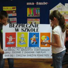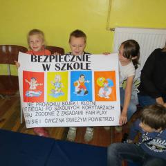 Dnia 31 października 2013 roku odbyła się cykliczna impreza szkolna "Dzień Bezpieczeństwa w Szkole" Celem imprezy było: kształtowanie odpowiedzialności za zdrowie własne i innych, przypomnienie zasad zachowania się podczas ewakuacji, przypomnienie zasad bezpiecznego zachowania na drodze, w szkole i w domu. Impreza rozpoczęła się ćwiczeniami ewakuacji z budynku szkoły. Następnie uczniowie szkoły obejrzeli przedstawienie przygotowane przez uczniów klasy V propagujące bezpieczne zachowania w szkole, w domu i na drodze. Inscenizacja przeplatana była piosenkami oraz prezentacjami plakatów przygotowanymi na konkurs odbywający się w ramach Dnia Bezpieczeństwa w Szkole "Bezpieczna Klasa 2013/2014". Kolejnym punktem imprezy była rywalizacja w konkurencjach sportowych. W końcu wybrano najbezpieczniejszą klasę 2013/2014. Rywalizację tę wygrała klasa V i II. Na zakończenie imprezy wręczono dyplomy uczniom szkoły, którzy w ramach działań poprzedzających uroczystość otrzymali tytuł "Regulaminowego ucznia".